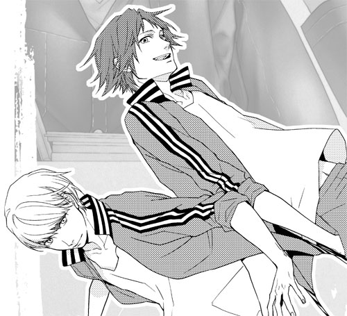 本当は全然違う絵を描こうとしたんですが、ふとギャルソン主人公ってかっこいいんじゃないのと萌え滾りごりっと。足立はコックさん?と思いつつなんだか描いていくうちにホテルマンになりました。