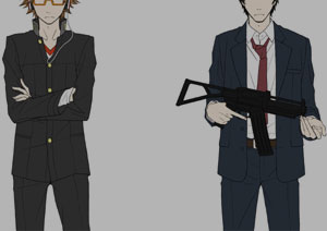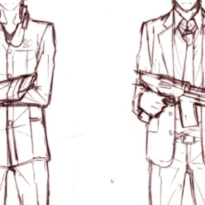 いやあの描きたい絵的にクナイとか包丁では合わなかっただけです。はけ二刀流でもいいかなと思ったんですが花村といえば腕組み!と思いやめときました。